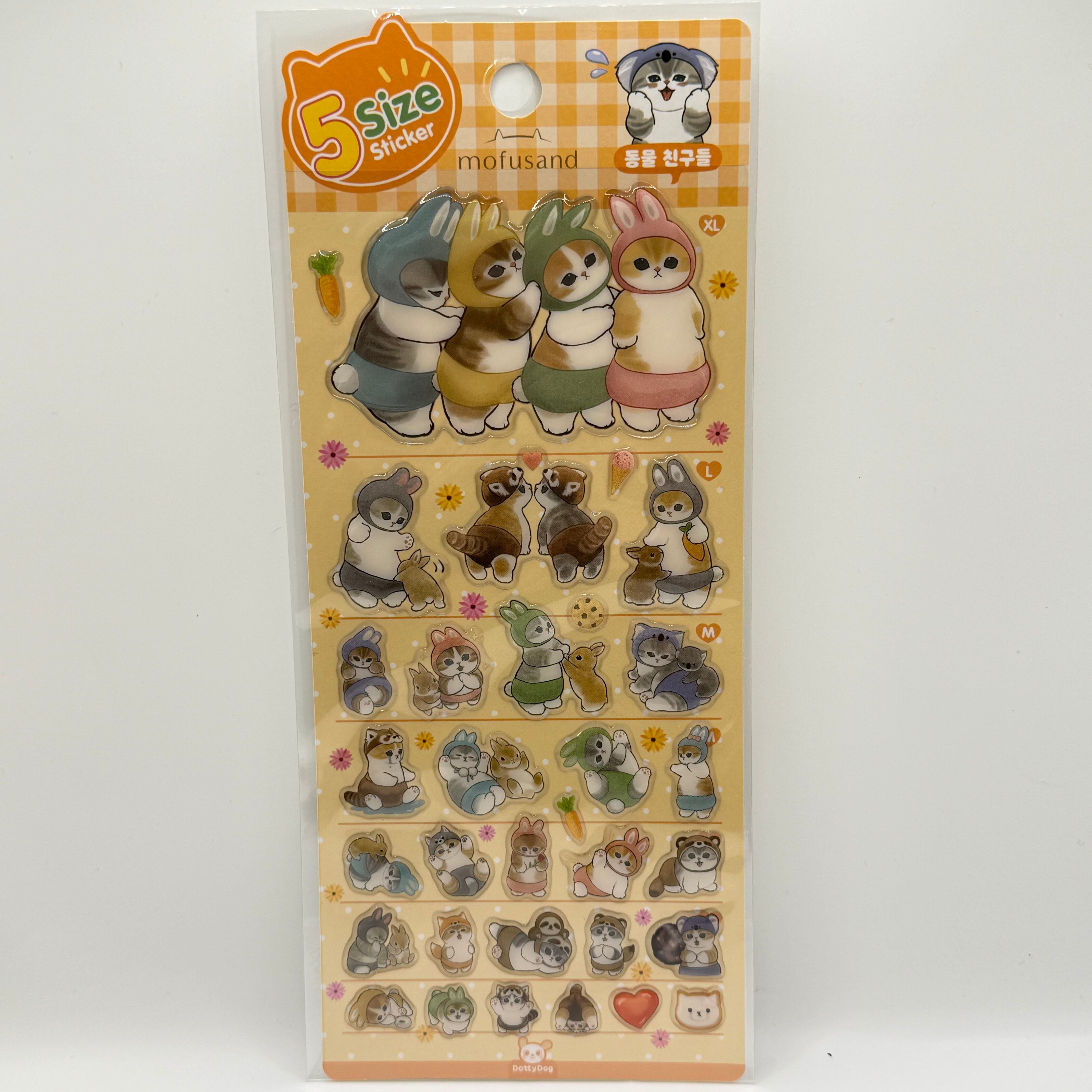 モフサンドファンにはたまらない!可愛らしいデザインのモフサンドが詰まった5枚セットが新登場です!手帳やスマホにちょっと貼るだけで、あなたの個性を引き立て、日常をより楽しく彩ります。愛らしいモフサンドのキャラクターたちが心を癒してくれるアイテムです!